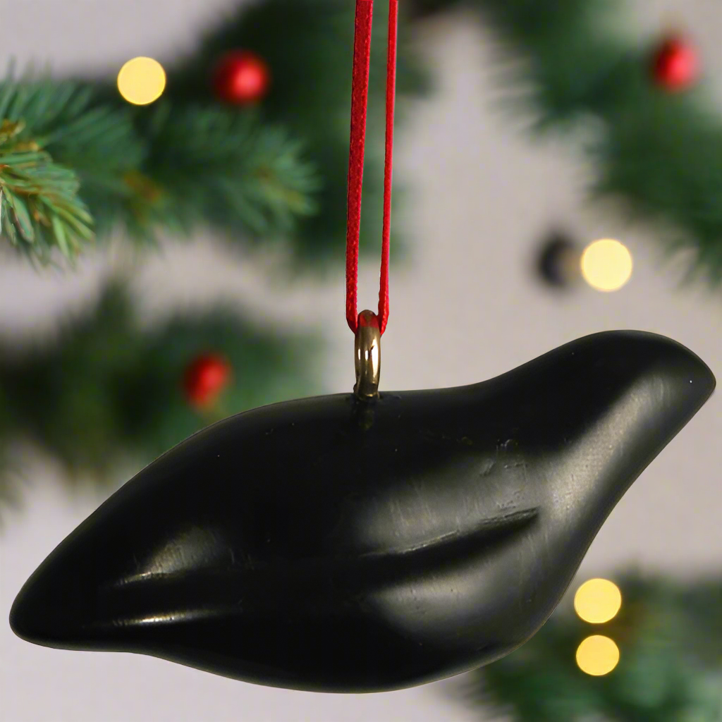 El carbón, un poco interesante derivado del carbono que se encuentra en las profundidades de la tierra, se ha transformado al tallarlo y pulir cuidadosamente a mano en este adorno de paloma. Esta roca sedimentaria negra, comúnmente utilizada como combustible, es un adorno único que seguramente agregará un espíritu festivo a su árbol de Navidad.