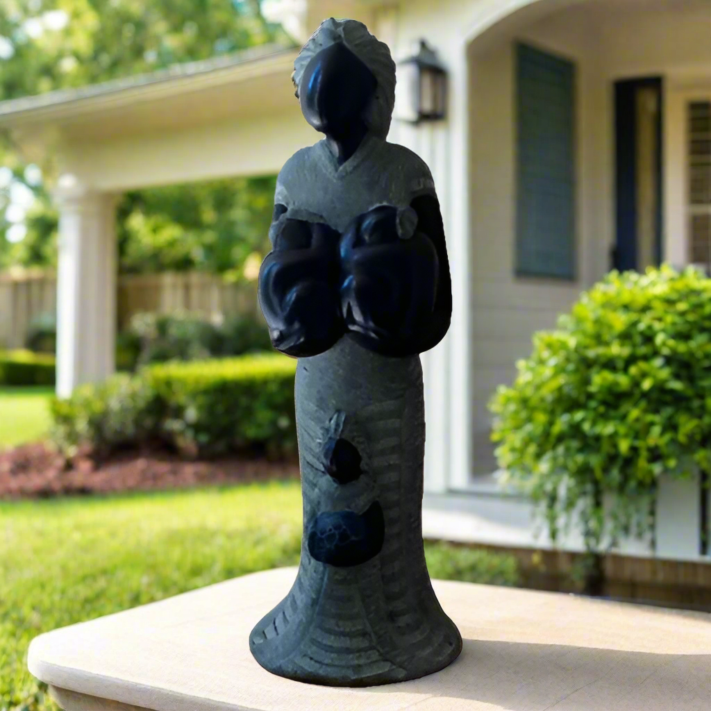 Se trata de unas hermosas tallas de esteatita haitiana de una madre sosteniendo a sus dos bebés y un tercer niño refugiado a sus pies. La escultura es un hermoso homenaje y una representación universal del amor maternal. Estas figuras están talladas a mano por artesanos haitianos, que trabajan muy duro tallando y lijando para obtener los diseños perfectos. La esteatita se encuentra en las tierras de Haití donde la gente deambula buscando la roca a la superficie. Esperamos que apoye al pueblo haitiano a través de su compra.