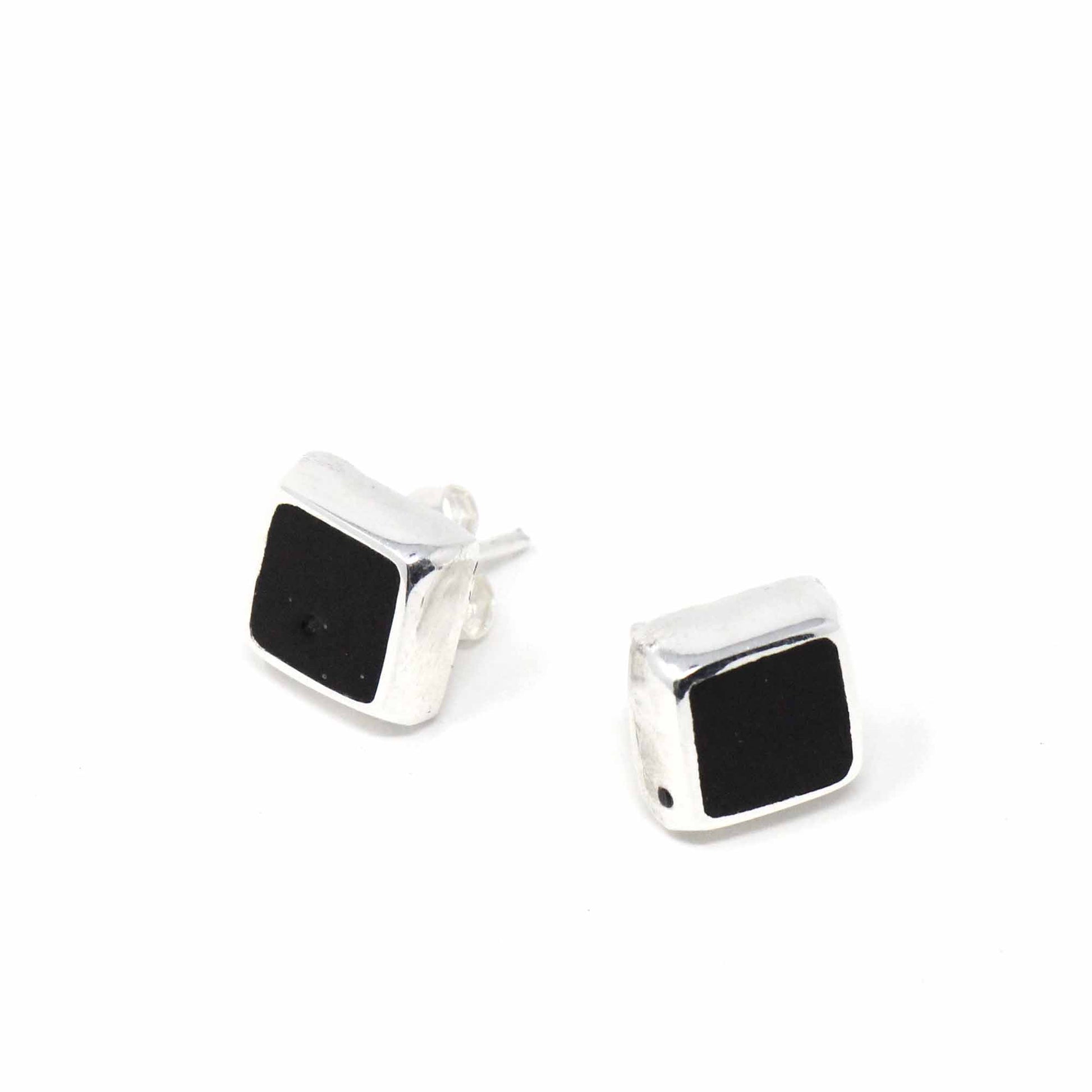 Pendientes de plata de ley y cuadrados negros: comercio justo