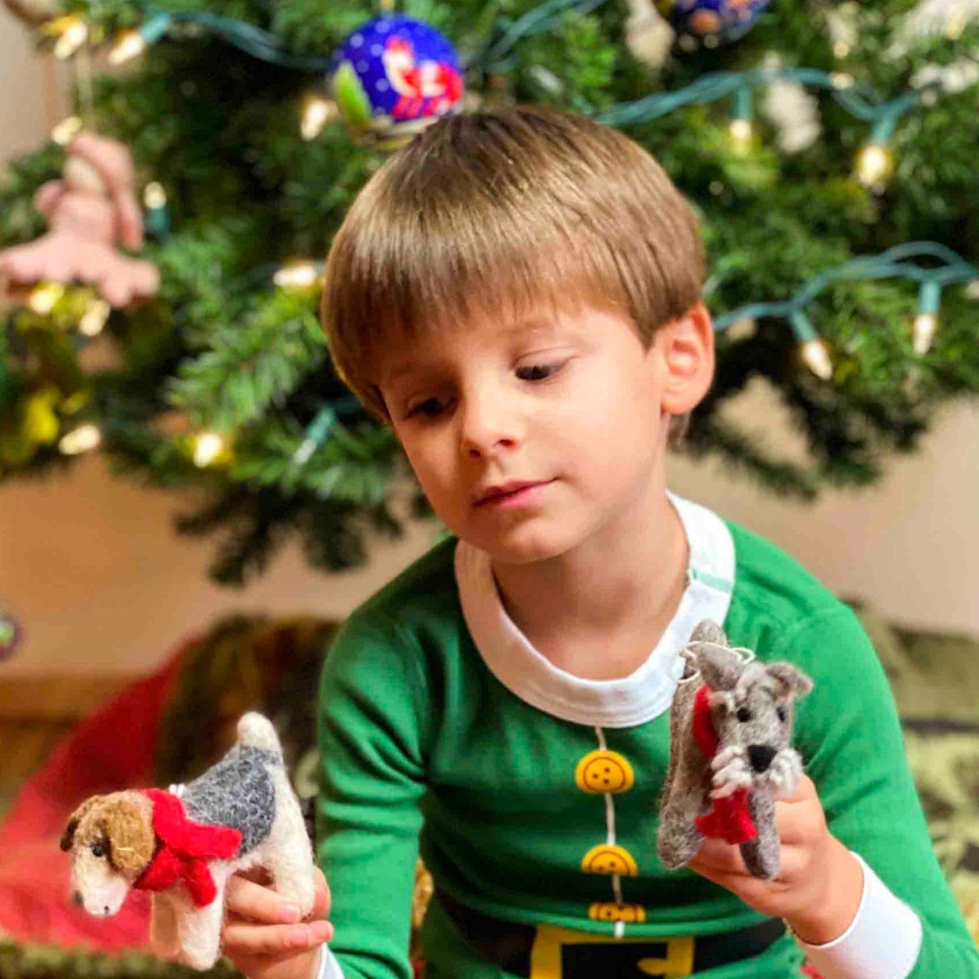 Terrier Dog Handmade Felt Ornaments, Set of 2