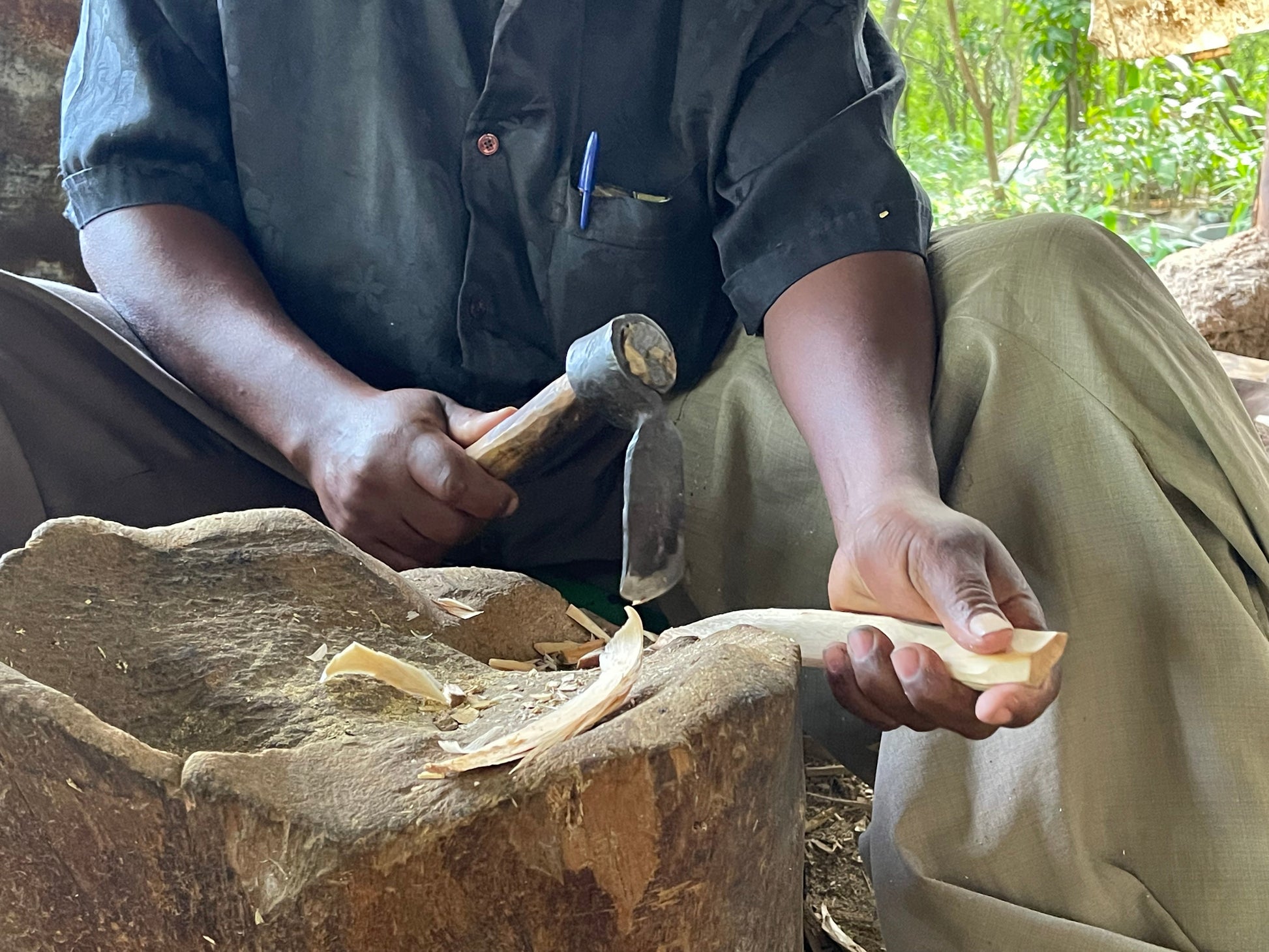 An integral part of the organization's function is to educate the craftspeople on the need for reforestation to enable the products to be available for years to come and offer a sustainable income for generations. While wood carving provides the major income for many in the Machakos area, other craftspeople earn a living by further enhancing the products including painting the napkin rings and carving discarded animal bone for the handles of salad serving sets. Often the bone is "batiked" by placing wax on the white bone and dipping the bone a dark brown/black dye, resulting in patterns African mud cloth designs.