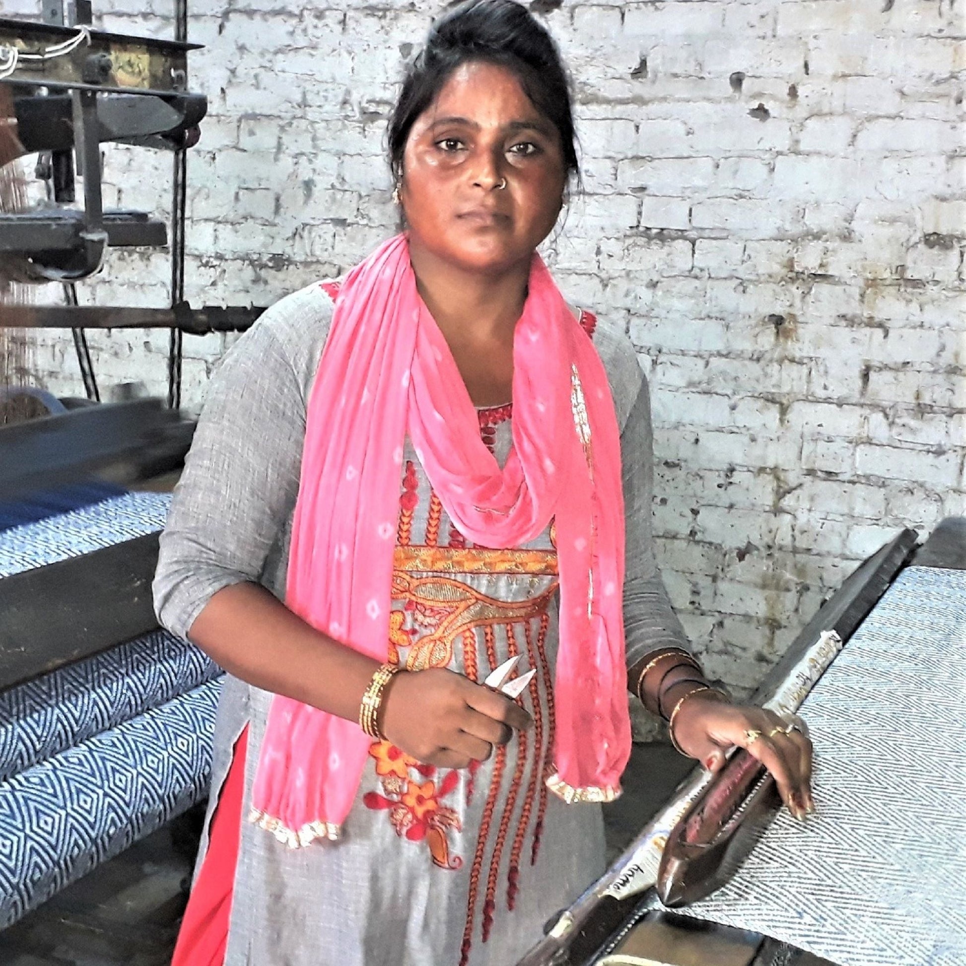 The weaving production has transformed the lives of both men and women artisans in Panipat. Men work in the workshops, while women work primarily from home. Women artisans have been given fair employment opportunities which has enabled them to put children back in school and provide them with a good education. The artisan group directly employs ten artisans, most of whom are women. When order sizes are larger, they provide work for other women from the village.
