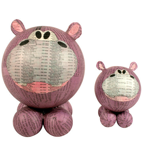 Hand-Crafted Paper Mache Hippo Sculpture from Recycled Materials-SM or LG-Fair Trade-Philippines