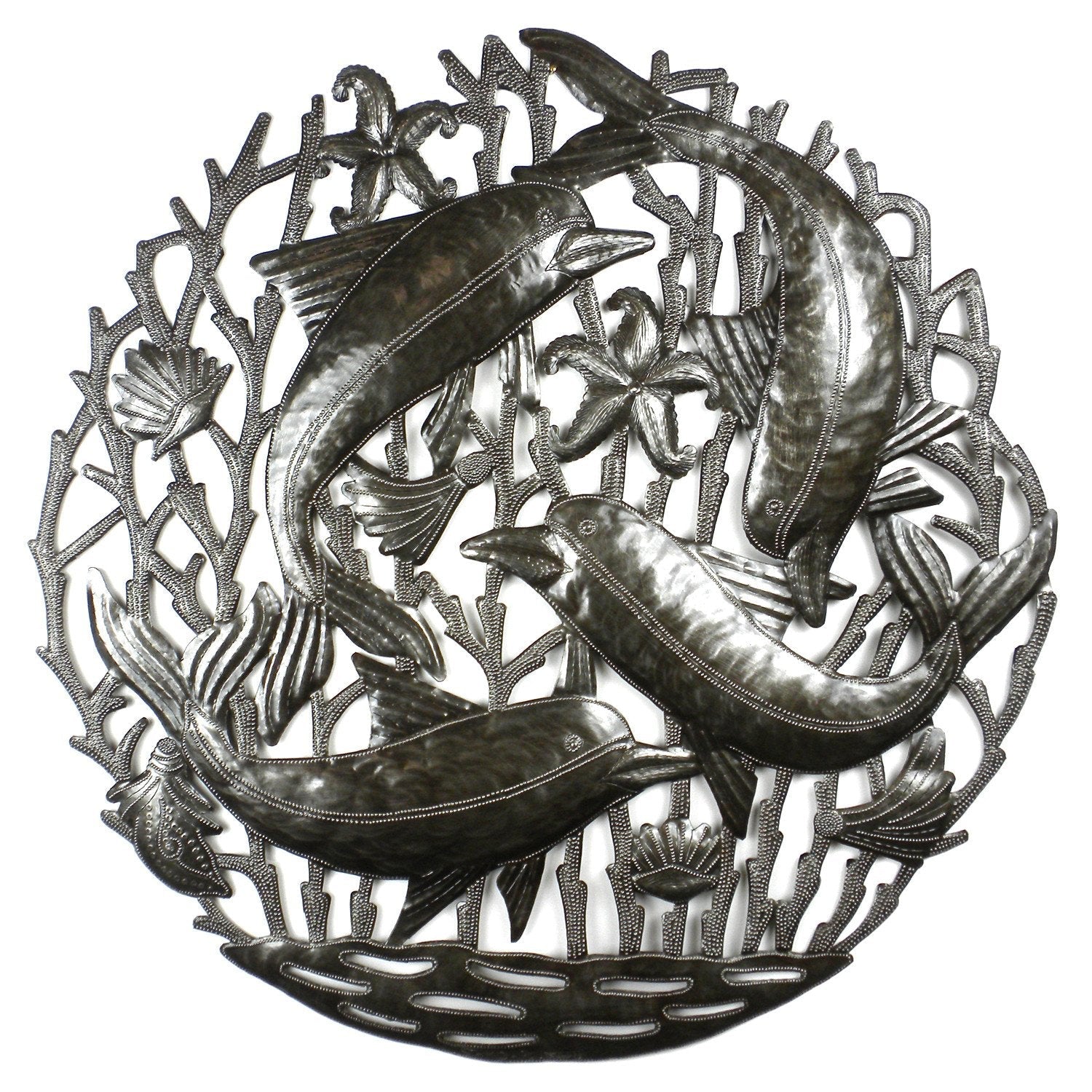 Upcycled Metal Wall Art - Pod of Dolphins by Croix des Bouquets- Haiti